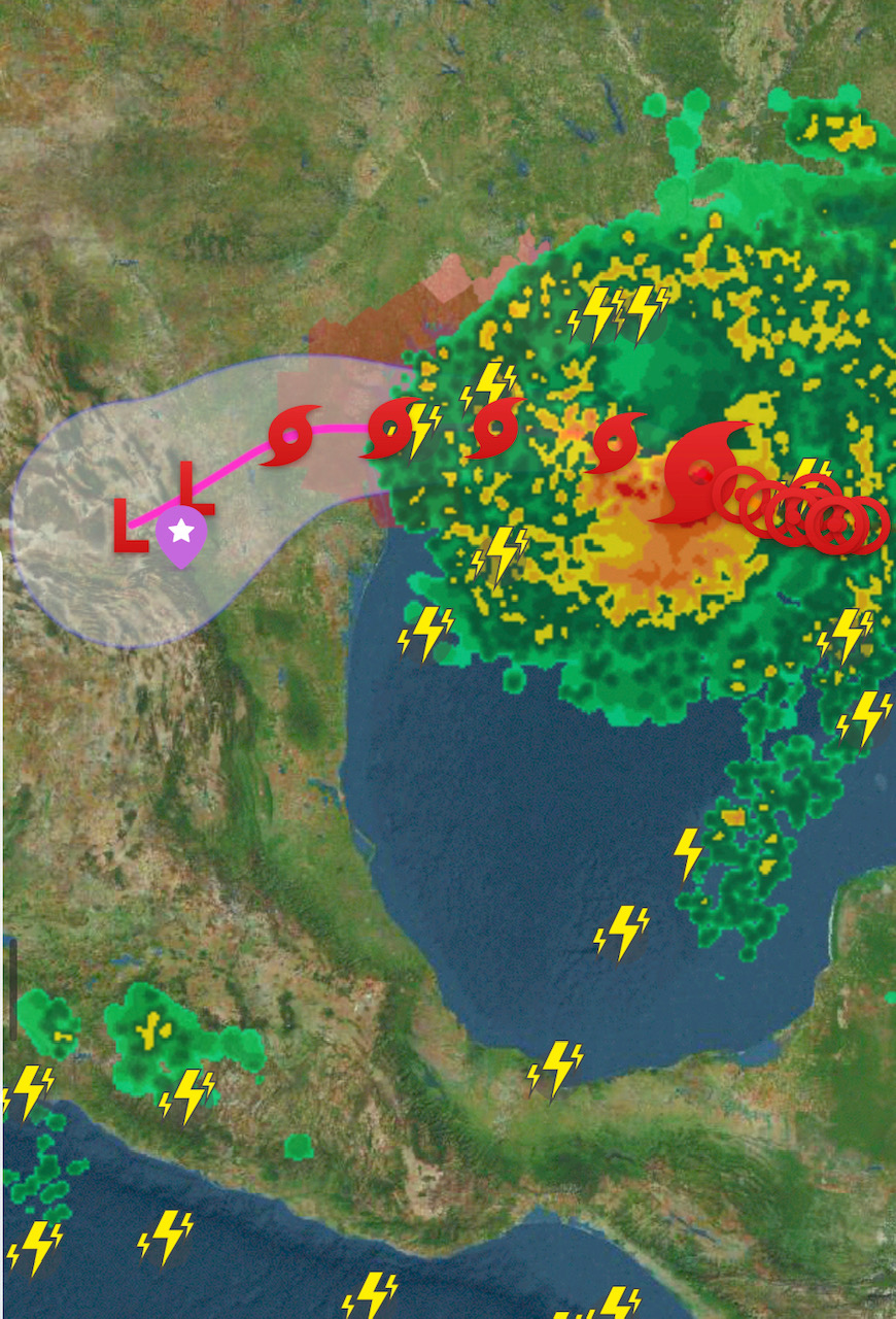 Las otras dos imágenes muestran dos modelos de la trayectoria de la tormenta tropical Hanna, ambas muestran que la culminación de Hanna en la cordillera de nuevo León, justamente en la región de nuestra localización.